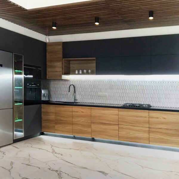 Лофт це мінімалізм – він не терпить зайвих деталей чи непотрібних речей. Для нього характерні правильні форми зі строгими лініями та мінімальна кількість зовнішньої фурнітури. Акцент робиться на різниці фактур (фасадів, стільниці, стін). Вони можуть бути однотонними або імітувати дерево, бетон та інші матеріали. При бажані, легкості інтер’єру можна додати за допомогою скла (наприклад : скляний пенал чи стіл)